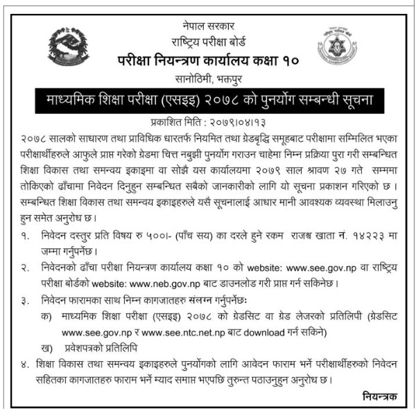 एसईई रिजल्टमा चित्त नबुझे पुनर्योग गर्न पाइने By अत्तरिया न्युज On २०७९ श्रावण १३, शुक्रबार ०८:४१ एसईई