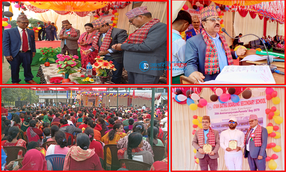 कञ्चनपुर- ज्ञान बाटिका बोडिङ सेकेण्डरी स्कुलको २६ औं बार्षिकोत्सव तथा अभिभावक भेला सम्पन्न गरेको छ । कञ्चनपुरको बेदकोट नगरपालिका वडा नं.७ सुडामा रहेको स्कुलको बार्षिक उत्सव तथा अभिभावक दिवस समारोह विविध कार्यक्रम गरी सम्पन्न गरेको हो ।