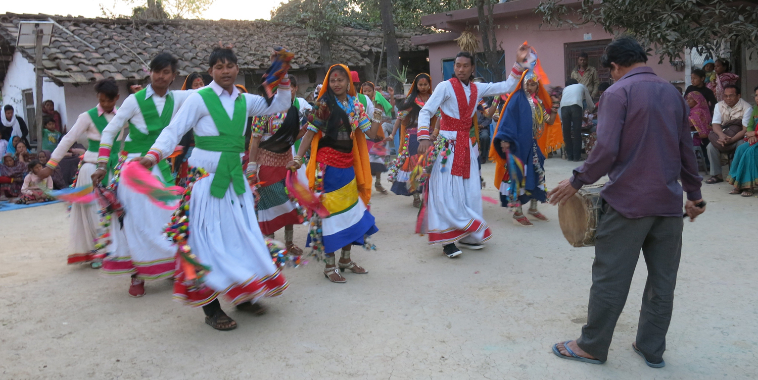 महिलाहरूले घगरिया, अङिया, फतुई (सिक्काको माला) र पुरुषले घगिया पहाना, तुल फेरा (परम्परागत पहिरन) लगाएर रातभरि होली खेल्ने प्रचलन छ । पछिल्लो समय डिस्को डिजेमा मात्रै सीमित हुने र होली खेल्ने समय पनि छोटिँदै गएकोप्रति पाका पुस्ताले चिन्ता व्यक्त गरेका छन् । सो समुदायका जानकारका अनुसार हिरण्यकश्यपले विष्णु भगवानका भक्त आफ्नो छोरा प्रल्हादलाई अग्निमा नजल्ने बरदान पाएकी आफ्नी बहिनी होलिकासँग आफ्नो काखमा राखेर जलाउने भनी आदेश दिएका थिए ।