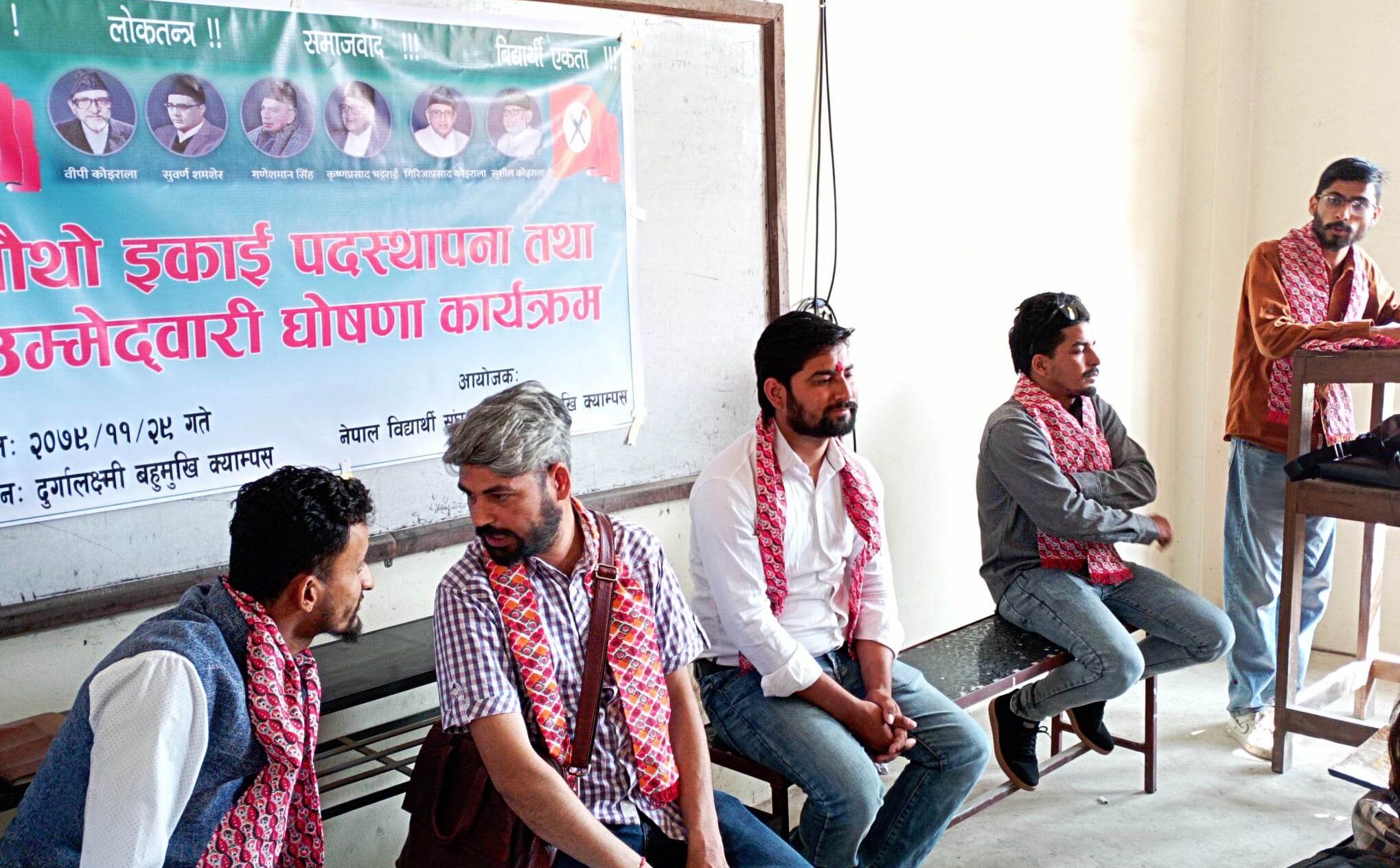 नेविसंघ क्याम्पस ईकाई समितीका सभापति देवराज ओझाको सभापतित्वमा भएको कार्यक्रममा नेपाली कांग्रेका कैलाली जिल्ला सचिव केशव मिश्र प्रमुख अतिथी रहेका थिए । त्यस्तै कार्यक्रममा दुर्गालक्ष्मीका पुर्व स्ववियु सभापति योगेश भट्ट लगायत नेविसंघका बिद्यार्थी नेता तथा कार्यकर्ताहरुको सहभागिता रहेको थियो ।