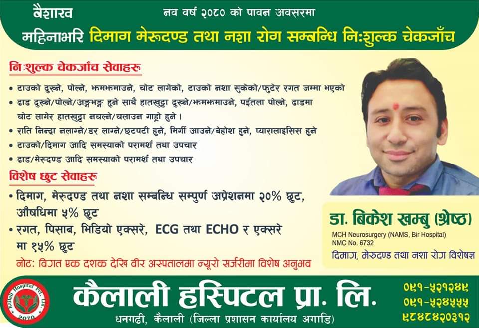 दिमाग, मेरुदण्ड तथा नशा रोग सम्बन्धि कैलाली अस्पतालमा निःशुल्क चेकजाँच