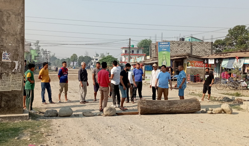 सडक निर्माणको जिम्मा लिएको खड्का कृष्ण जेबी निर्माण कम्पनीले व्यवास्ता गरि धुलोधुवाँ भएपछि स्थानीयले सडक अवरुद्ध गरेको स्याउले बजार व्यवस्थापन समितिका अध्यक्ष गोपाल देउवाले बताए । उनले धुलाम्मे सडकले आसपासका नागरिकको स्वास्थ्य अवस्था निकै जोखिममा पर्नुका साथै स्याउले बजारको व्यवसाय नै धरापमा परेको बताए ।