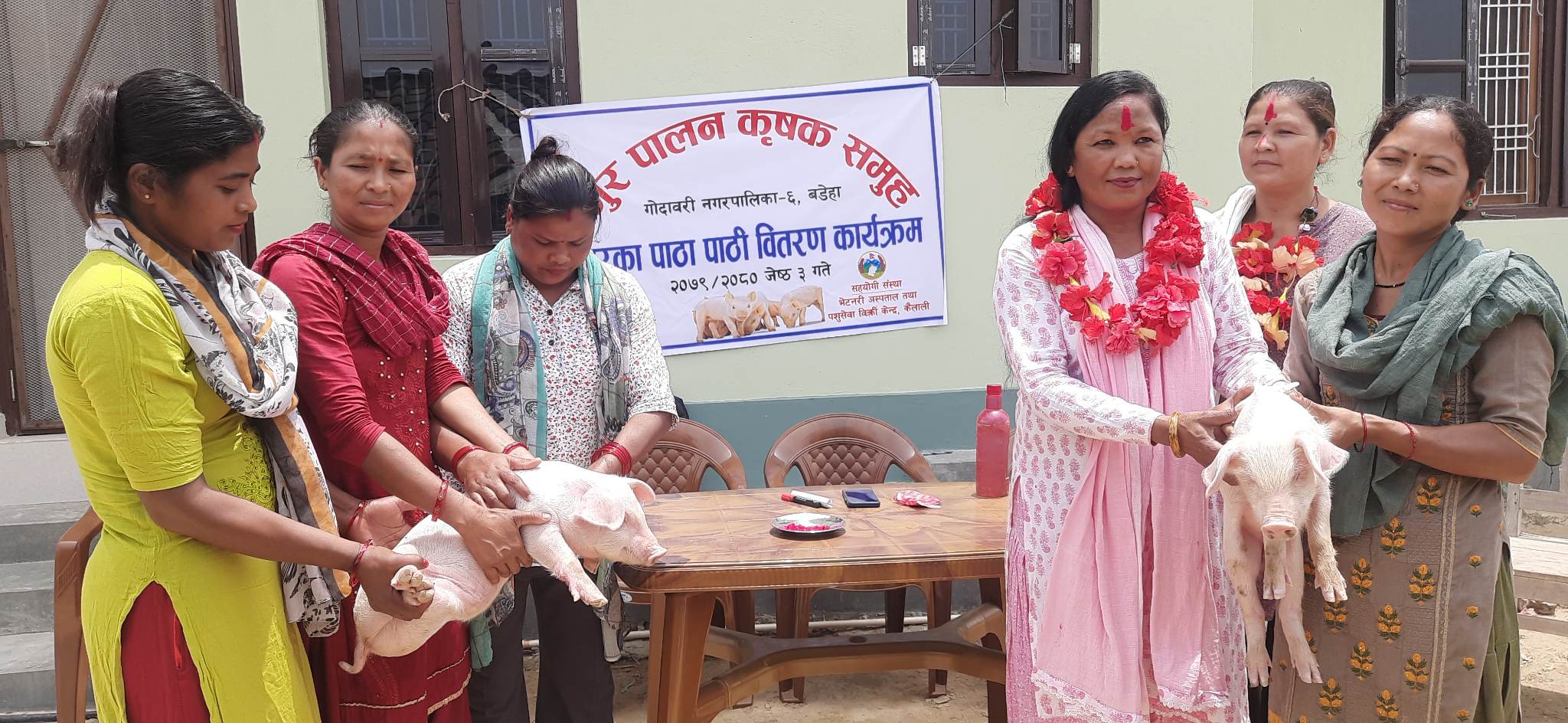 भेटेरिनरी अस्पताल तथा पशु सेवा विज्ञ केन्द्र कैलालीको आर्थिक सहयोगमा संचालिन कार्यक्रमका स्थानीय बंगुर पालन किसान समुह मार्फत संचालन गरिएको हो । जसअन्तरगत २७ किसानलाई ५९ वटा वंगुर वितरण गरिएको विपना चौधरीले बताइन् ।