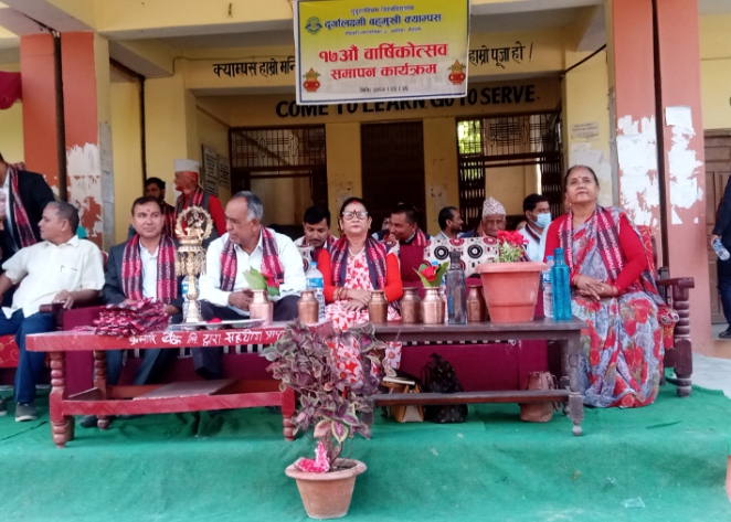 अत्तरिया— कैलालीको अत्तरियामा रहेकोे दुर्गालक्ष्मी बहुमुखी क्याम्पसको १७औं वार्षिकोत्सव कार्यक्रम सम्पन्न भएको छ । शुक्रबार दुर्गालक्ष्मी बहुमुखी क्याम्पसको आयोजनामा सञ्चाल भएको वार्षिकोत्सव समारोह सम्पन्न भएको हो ।