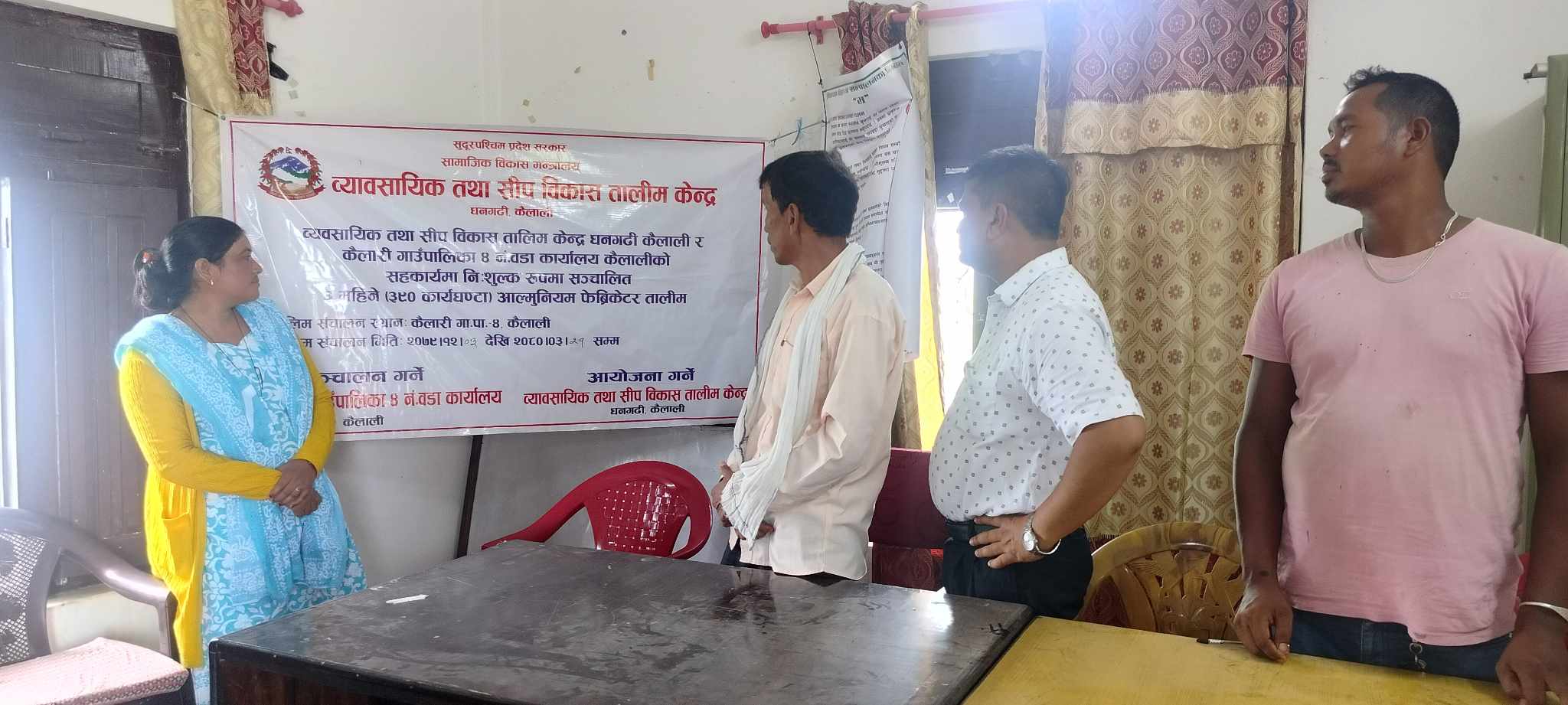अत्तरिया- कैलाली जिल्लाको कैलारी गाउँपालिका वडा नं.४ मा ३ महिने आल्मुनियम फेव्रिकेटर तालिम आइतबार एक कार्यक्रमका बिच सम्पन्न भएको छ ।