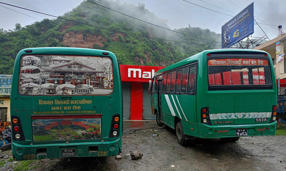 डोटी- एक महिनादेखि बन्द रहेको दिपायल-सिलगढी नगर बस सेवा पुनः सञ्चालनमा आएको छ । नगरपालिकाले ५ वर्षअघि तीन वटा नगर बस सञ्चालनमा ल्याएको थियो । तीनवटै बस एकैसाथ बिग्रिएपछि एक महिनादेखि सेवा बन्द थियो ।