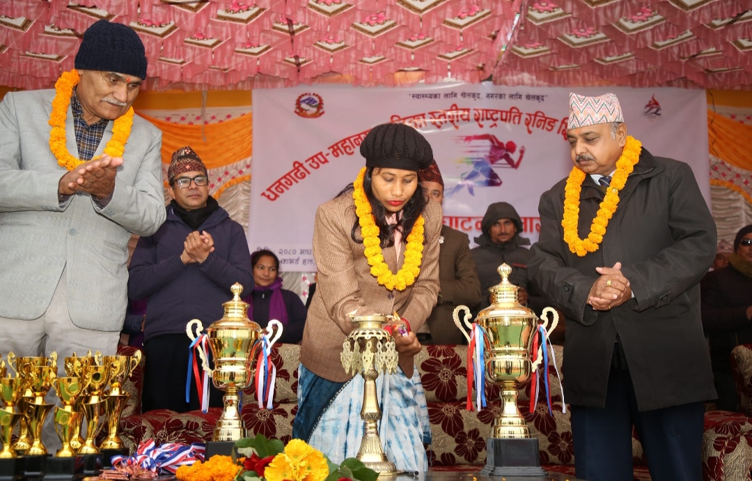 धनगढी- धनगढी उपमहानगरपालिका स्तरीय राष्ट्रपती रनिङ शिल्ड प्रतियोगिता सुरु भएको छ । प्रतियोगिताको धनगढी उपमहानगरकी उपप्रमुख कन्दकला रानालो धनगढी रङशालामा बिहिबार एक कार्यक्रमका बीच उद्घाटन गरिन् ।