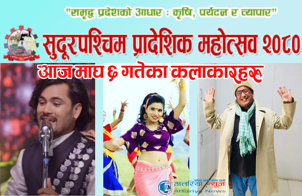 अत्तरिया- कैलालीको अत्तरियामा जारी सुदूरपश्चिम प्रादेशिक महोत्सवको दसौं दिन चर्चित गायिका चक्र बम लगायत कलाकारहरूको प्रस्तुति रहने भएको छ । आजको कार्यक्रममा कलाकारहरू चक्र बम, अस्मीता पुरी, माया पाण्डे, रितु थपा, हेम अधिकारी, भिम बिष्ट र लाल बहादुर धामी आउने भएका छन् ।