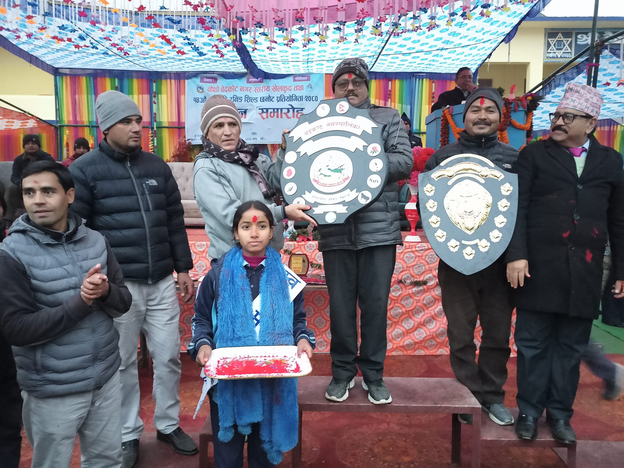 सुदूरपश्चिम प्रदेश प्रमुख देबराज जोशीले शुक्रबार प्रतियोगिता उद्घाटन गरेका थिए । बेदकोट नगरपालिकाका मेयर भोजराज बोहराको अध्यक्षतामा सुदूरपश्चिम प्रदेश सभा सांसद माननीय बिक्रम सिह धामीको प्रमुख आतिथिमा रनिङ शिल्ड प्रतियोगिताको समापन गरिएको छ ।