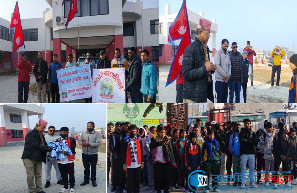 अत्तरिया- कैलालीको गोदावरी नगरपालिकाद्वारा राष्ट्रपति रनिङ शिल्डको जिल्ला स्तरिय प्रतियोगिता खेल्न जाने खेलाडीलाई गोदावरीका नगर प्रखुम बिरेन्द्र भट्टले बिदाई गरेका छन । १४ औँ जिल्ला स्तरिय राष्ट्रपति रनिङ शिल्ड प्रतियोगितामा सहभागी हुने खेलाडीहरूलाई बिदाई गरेको हुन ।