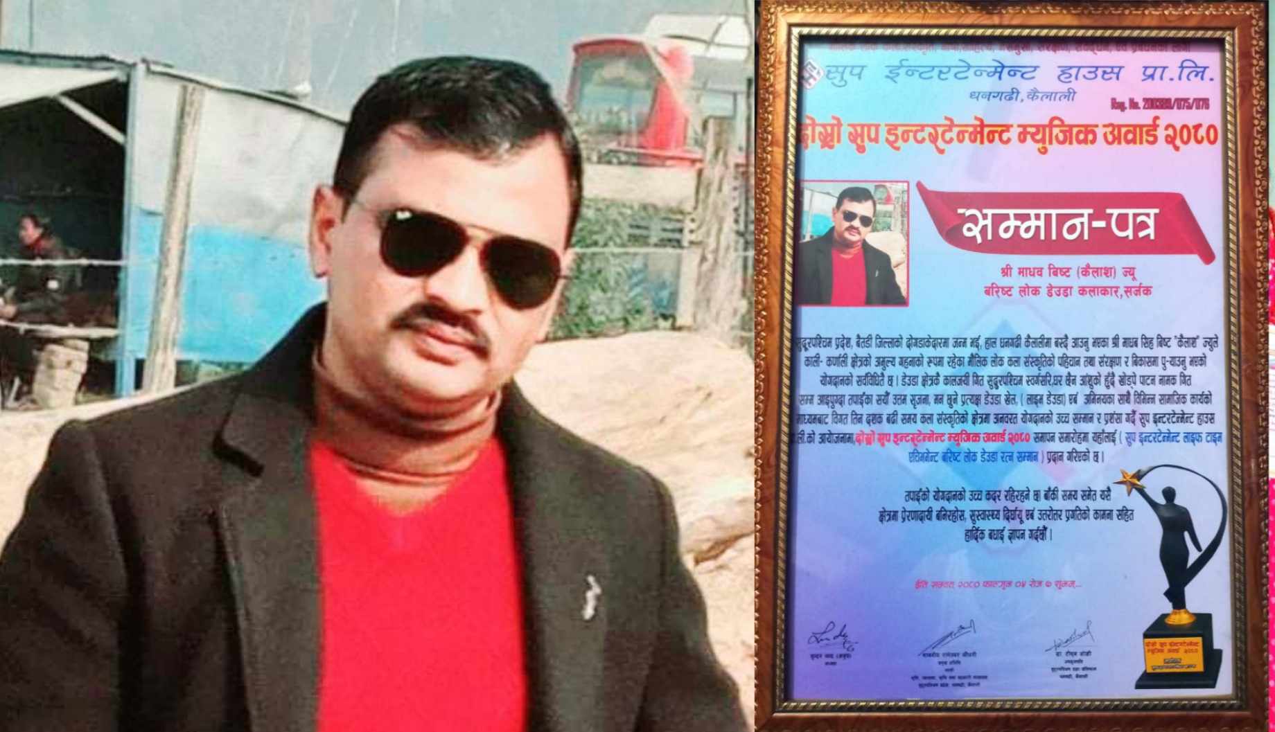 सन्तोष पाण्डेय / अत्तरिया – विगत लामो समय देखी, कला संस्कृति तथा डेउडा क्षेत्रमा पुर्याएको योगदान को उच्च सम्मान र कदर गर्दै बरिस्ठ डेउडा कलाकार माधब बिस्ट (कैलाश) यस बर्षकै सर्बाेत्कृष्ट सम्मान काे रुपमा रहेकाे “बरिष्ट लाेक देउडा रत्न “बाट सम्मानित भएका छन् ।