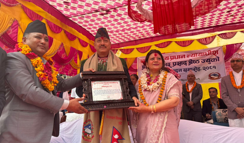 लामो समय देखि न्याय क्षेत्रमा महत्वपूर्ण योगदान पुर्याएबापत उच्च सम्मानका साथ उनलाई आइतबार सदरमुकाम सिलगढीमा नागरिक अभिनन्दन गरिएको दिपायल सिलगढी नगरपालिकाका प्रमुख विजय सिंह खड्काले बताए ।
