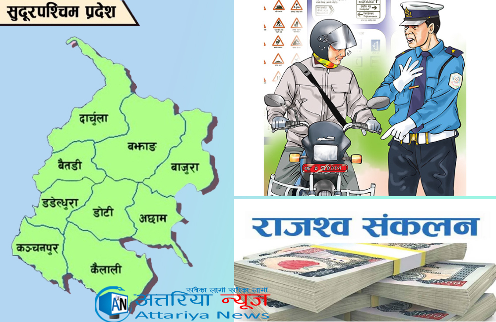 अत्तरिया- सुदूरपश्चिम प्रदेशमा ट्राफिक प्रहरीले चालु आर्थिक वर्षको १० महिनामा ४ करोड १६ लाख ११ हजार राजस्व सङ्कलन गरेको छ । ट्राफिक प्रहरीले चालु आर्थिक वर्षको साउन देखि वैशाख मसान्त सम्म को अवधिमा ट्राफिक नियम उल्लङ्घन गर्ने सवारीचालकलाई कारबाही गरी उक्त राजस्व सङ्कलन गरेको हो । सो अवधिमा प्रदेशभरि ट्राफिक नियम उल्लङ्घन गर्ने ६२ हजार ९ सय ३१ जना सवारी चालकलाई कारबाही गरिएको नेपाल प्रहरी राजमार्ग सुरक्षा तथा ट्राफिक व्यवस्थापन कार्यालय अत्तरिया, कैलालीका निमित्त प्रमुख प्रहरी नायब उपरीक्षक अनिल कुमार उप्रेतीले जानकारी दिए ।