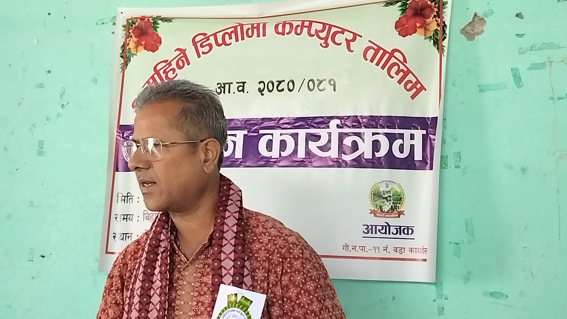 वडाध्यक्ष प्रेम सिंह बडैलाले रोजगारका लागि कम्प्युटर शिक्षा अतिआवश्यक रहेकाले जीवनोपयोगी बनाउन कम्प्युटरको तालिमको योजना राखेको बताए । वडा नं. १ ले यस अघि बेसिक केवलको कम्प्युटर तालिम लगायत अन्य तालिमको आयोजना गरेको थियो भने अहिले ती प्रशिक्षार्थीहरूलाई पुरस्कृति गर्ने डिप्लोमा लेबलको तालिमको आयोजना गरेको बताएका छन ।