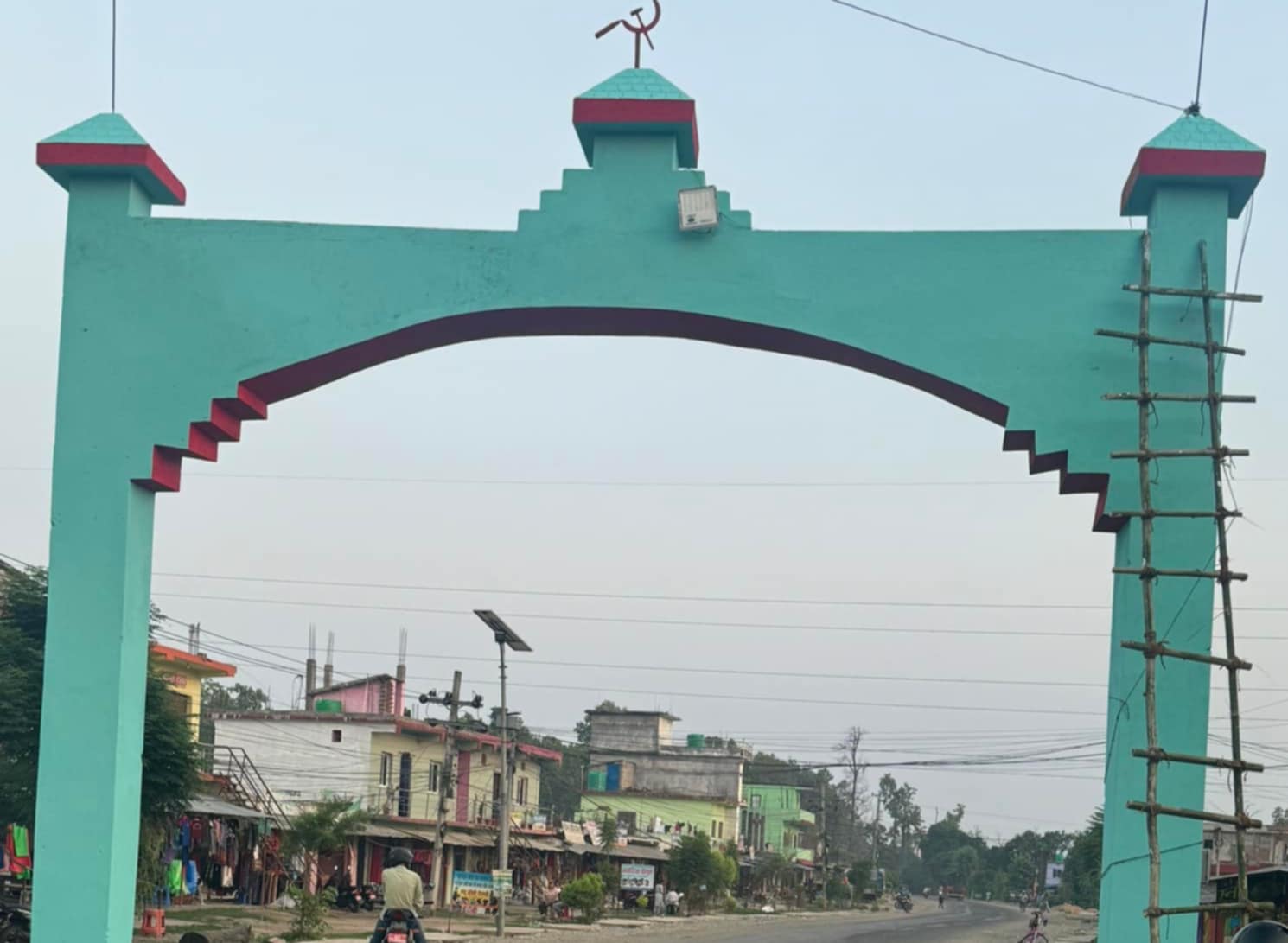 अत्तरिया- कैलालीको गोदावरी नगरपालिका वडा नम्बर ८ स्थित स्याउले बजारको गेटमा रङ्गरोगन गरिँदै छ ।