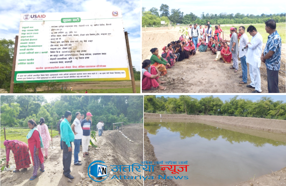 अत्तरिया- कैलालीको गोदावरी नगरपालिका वडा न. १० को खमौरा शिविरको ग्वासी घटेश्वर सामुदायिक वनमा निर्माणमा अधुरो रहेको खाल्डो पारिएको भागमा एकीकृत माछा पोखरी निर्माणको कार्य सम्पन्न भएको छ ।