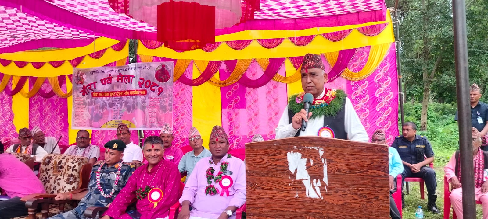 गौरापर्व मेला मूल समिति संयोजक स्याउले बजार व्यवस्थापन समिति अध्यक्ष गोपाल देउवाको सभापतित्वमा भएको कार्यक्रममा प्रमुख अतिथि सुदूरपश्चिम प्रदेशका आर्थिक मामिला राज्यमन्त्री प्रकाश बहादुर बम रहनु भएको थियो ।