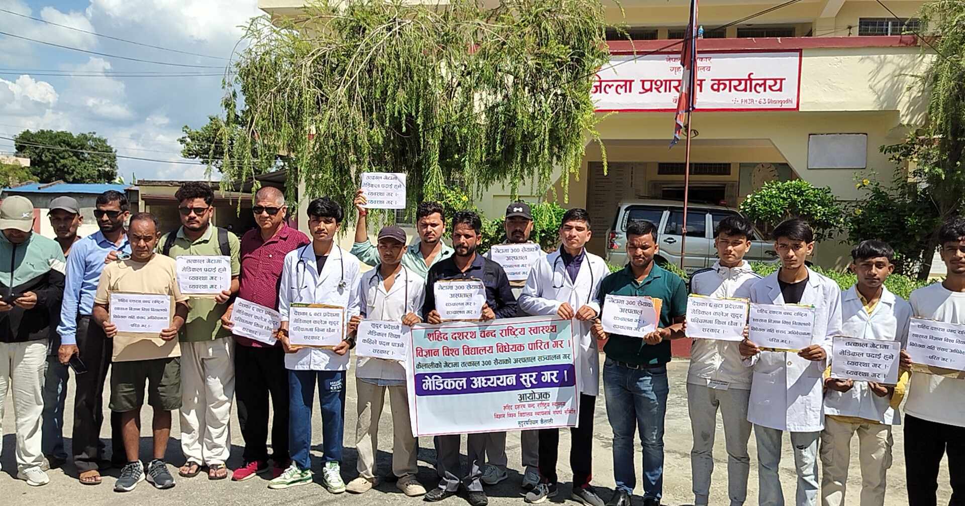 २०८० सम्म प्रत्येक प्रदेशमा सरकारी मेडिकल कलेज खोल्ने विषय सुदूरपश्चिमको हकमा भने नारामा मात्र सीमित बन्न पुगेको भन्दै विद्यार्थीहरूको समेत सहभागितामा गेटा विश्वविद्यालय संर्घष समिति जिल्ला प्रशासन कार्यलयमा धर्ना तथा प्रधानमन्त्रीलाई ज्ञापन पत्र बुझाएको छ । सोमबार जिल्ला प्रशासन कैलालीमा धर्ना दिएको हो ।