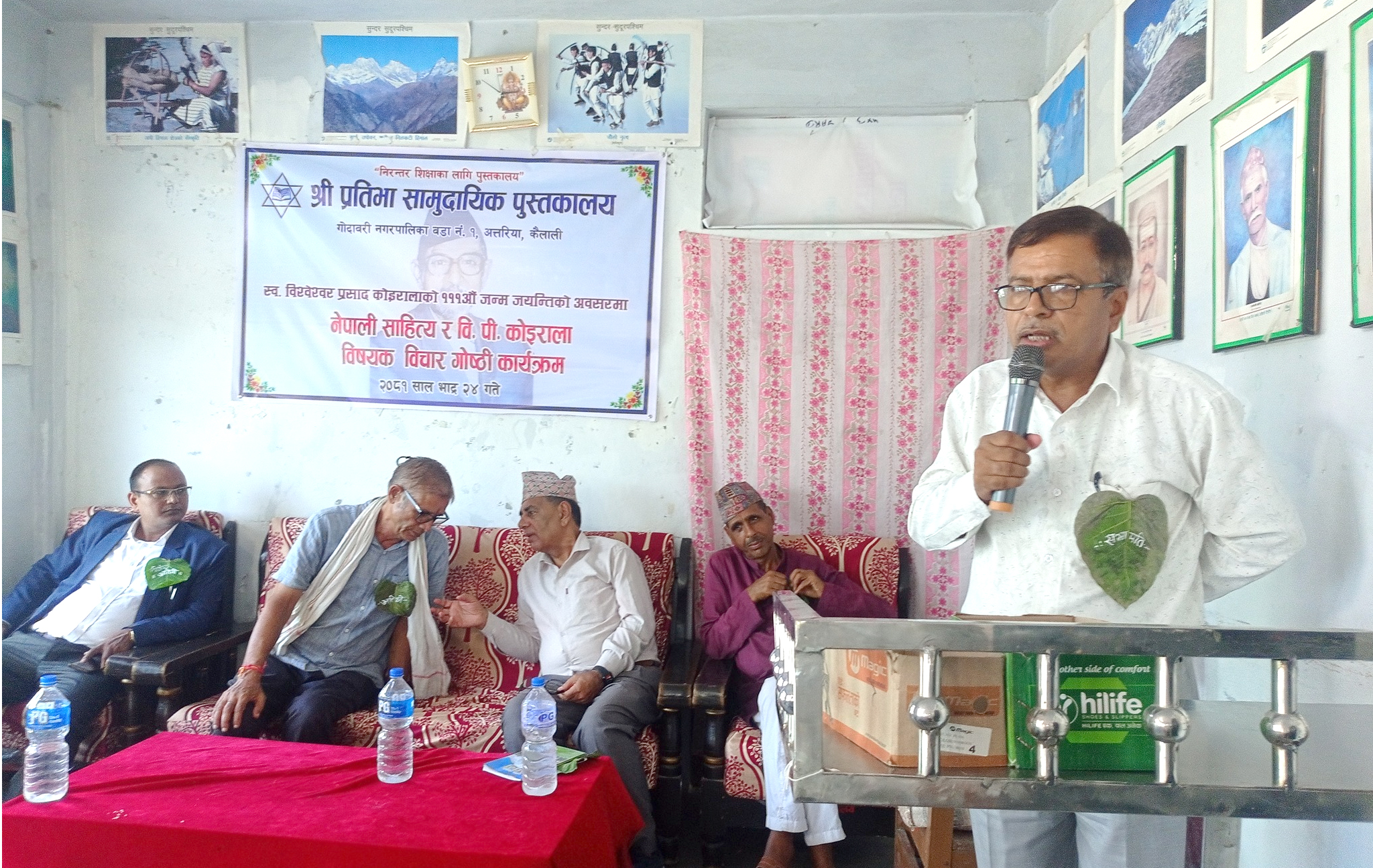 अत्तरिया- कैलालीको गोदावरी नगरपालिका वडा नं. १ मा रहेको प्रतिभा सामुदायिक पुस्तकालयले स्वर्गीय बीपी कोइरालाको १११ औँ जन्मजयन्ती तथा नेपाली साहित्यमा बीपी कोइराला विषयक विचार गोष्ठी कार्यक्रम सम्पन्न गरेको छ । आज सोमबार एक कार्यक्रमका बिच पुस्तकालयले उक्त कार्यक्रम सम्पन्न गरेको हो ।