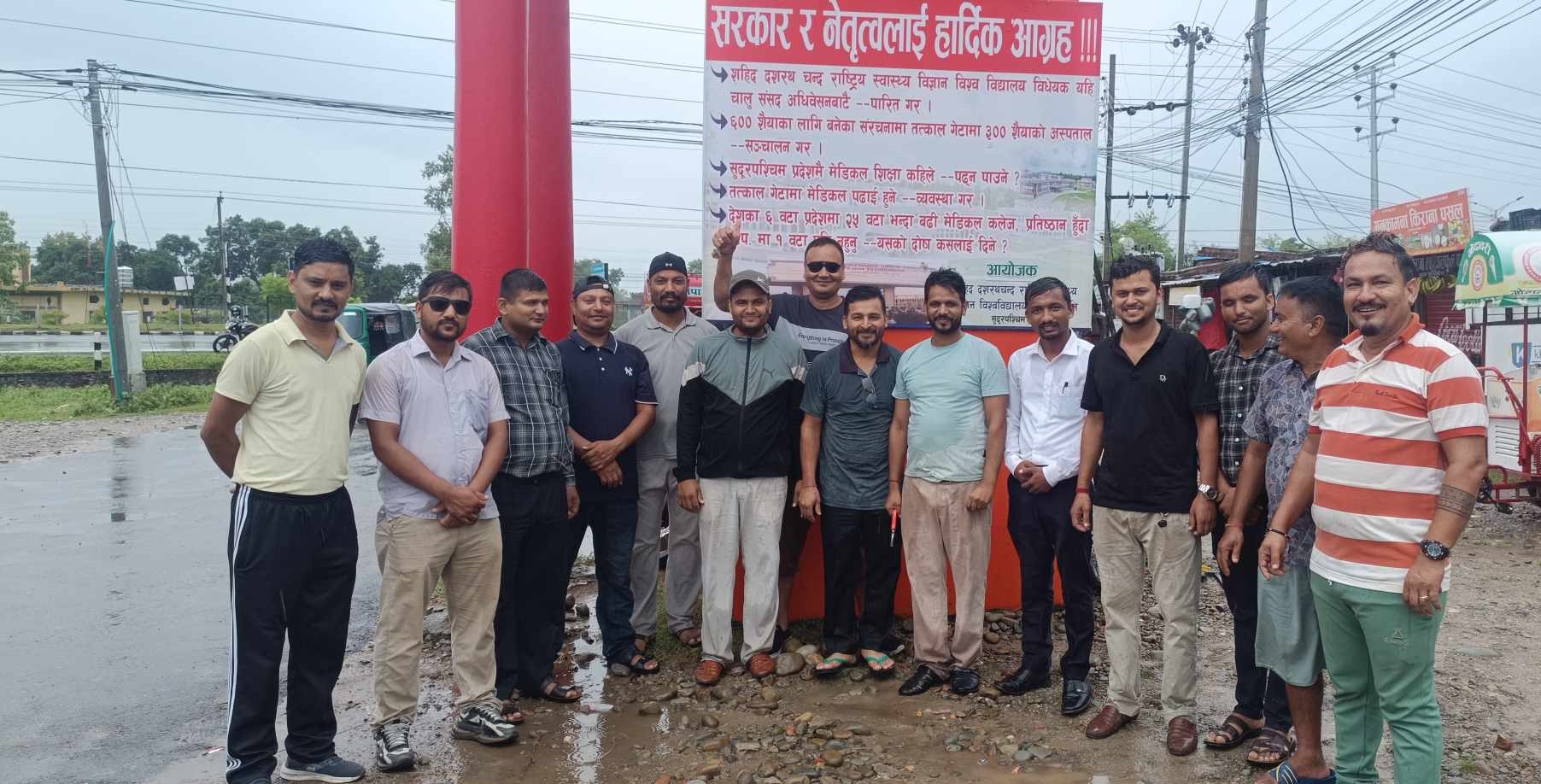 ‘के सुदूरपश्चिमबाट कोही प्रधानमन्त्री भएको छैन ? के सुदूरपश्चिमबाट कोही मन्त्री भएको छैन ? यहाँबाट सांसद छैनन भनेर प्रश्न गर्नको लागि हामीले बोर्ड टासेका हौ’ संयोजक पाण्डेले भने ‘हाम्रो एउटै भनाइ हो गेटामा तत्काल ३ सय शय्याको अस्पताल सञ्चालन गरिनुपर्छ भन्ने हो । मेडिकल शिक्षा पढाई हुनुपर्छ ।