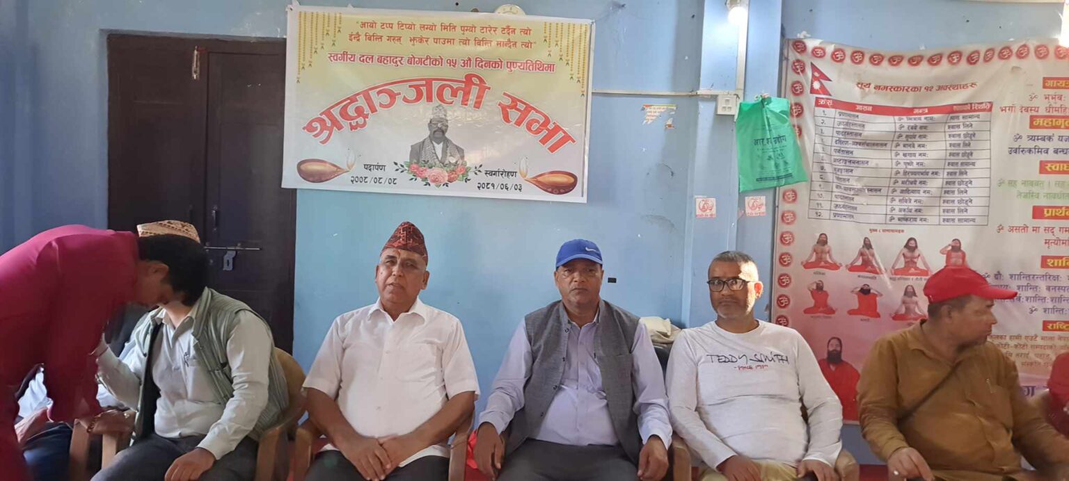 अत्तरिया- डेउडा प्रतिष्ठानका अध्यक्ष स्वर्गीय दलबहादुर बोगटीको १५ औँ दिनको पुण्य तिथिका अवसरमा बिहीबार धनगढीमा शोक सभाको आयोजना गरिएको छ ।