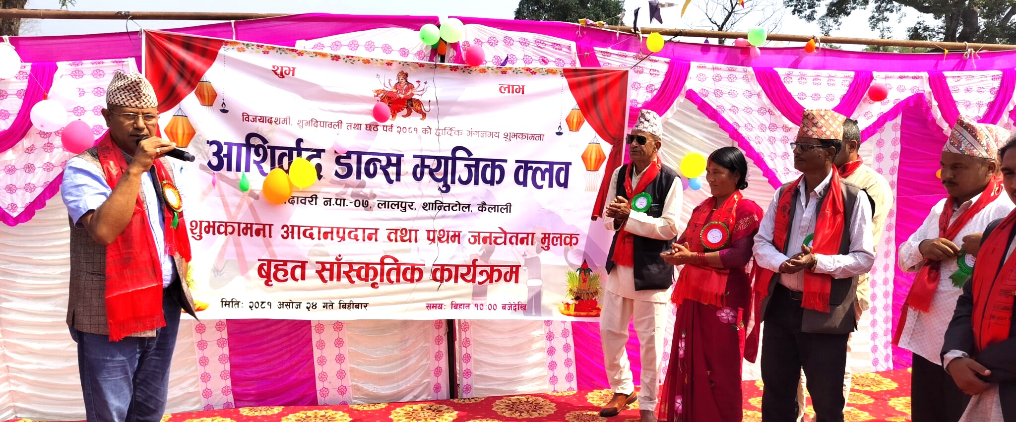 अत्तरिया- कैलालीको गोदावरी नगरपालिका वडा न. ७ को लालपुर शान्तिटोलमा दशैंको अवसरमा शुभकामना आदान प्रदान तथा वृहत सांस्कृतिक कार्यक्रम सम्पन्न भएको छ ।