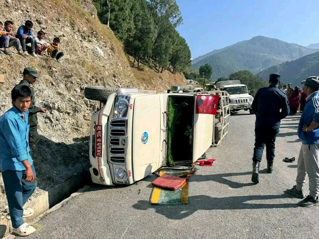 तलकोट गाउँपालिकाबाट सदरमुकाम चैनपुर तर्फ आइरहेको बा १८ च ५१४९ नम्बरको जिप जयपृथ्बी नगरपालिका–११ खानेपानी ट्याङ्की नजिक भोपुरमा दुर्घटना भएको हो ।