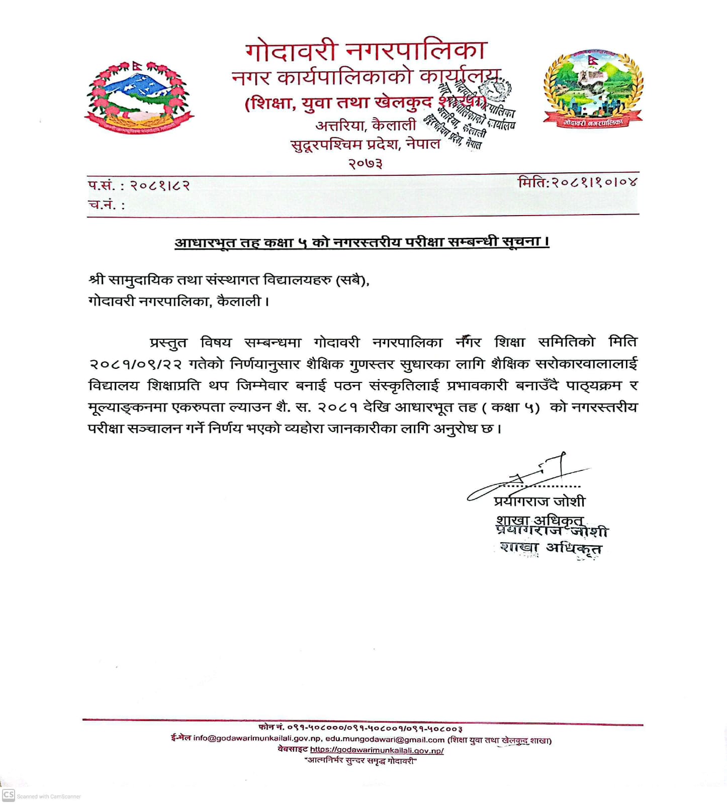 यस निर्णयका अनुसार, शै. स. २०८१ देखि आधारभूत तह (कक्षा ५) को नगरस्तरीय परीक्षा सञ्चालन गर्ने निर्णय गरिएको हो। यो कदम पाठ्यक्रम र मूल्याङ्कनमा एकरुपता ल्याउनका लागि महत्त्वपूर्ण रहेको जनाइएको छ ।