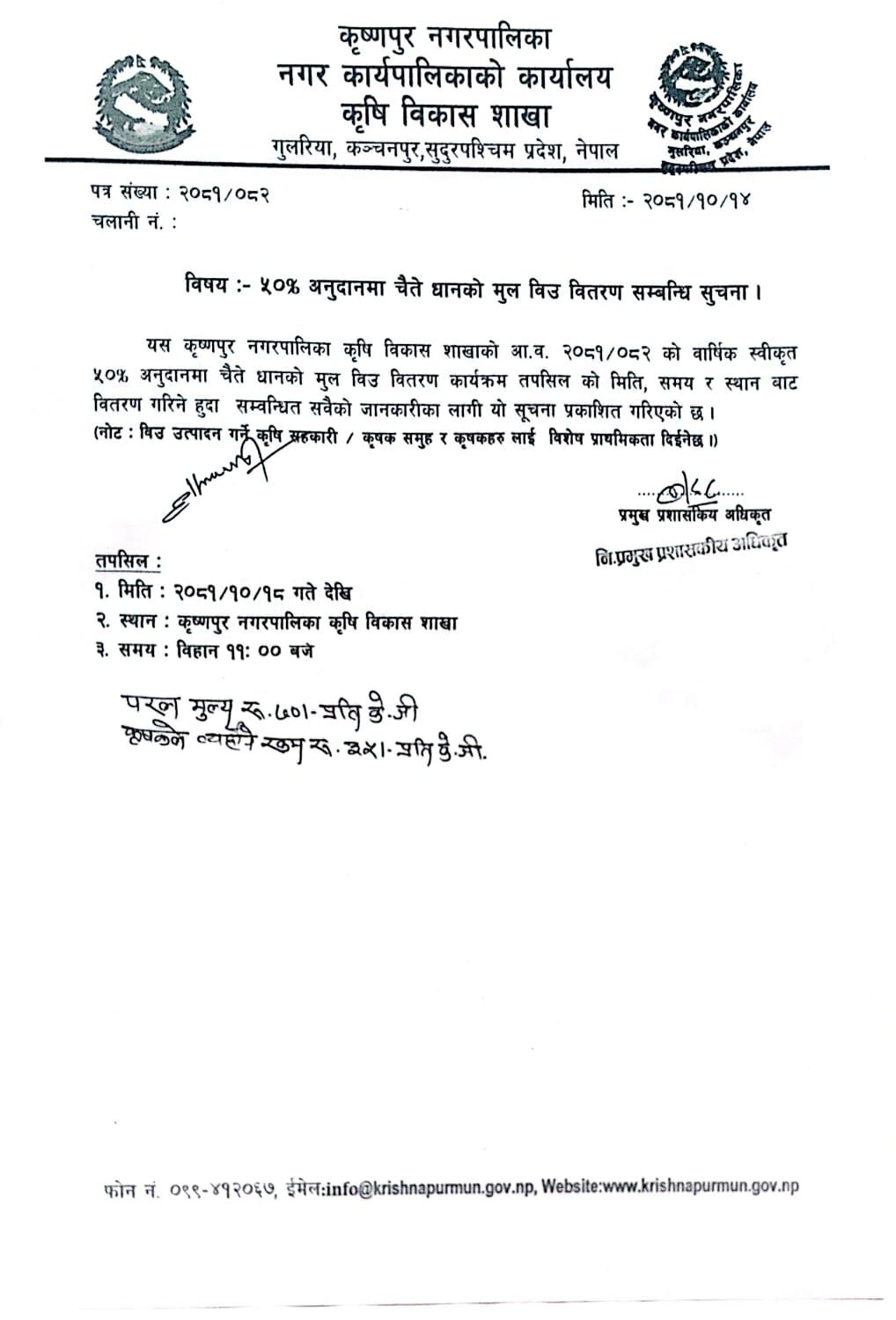 स्थान: कृष्णपुर नगरपालिका, कृषि विकास शाखा