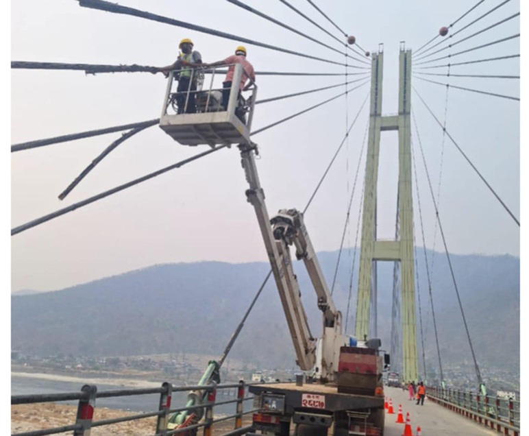 बर्दिया । गत वर्ष फागुन २८ गते कर्णाली पुल चिसापानीमा स्टेड केबुलमा आगलागी भएपछि यसको मर्मत भइरहेको छ। ट्रकमा आगलागी हुँदा पुलका १४ वटा केबुलमा क्षति पुगेको थियो। डिभिजन सडक कार्यालय नेपालगन्जले यातायात एकतर्फी सञ्चालन गरी मर्मत गरिरहेको छ। तीन साताअघि सुरु गरिएको मर्मत कार्य आगामी एक साताभित्र सम्पन्न गर्ने लक्ष्य रहेको डिभिजन सडक कार्यालय नेपालगन्जका प्रमुख नरेन्द्र भट्टले बताए।
