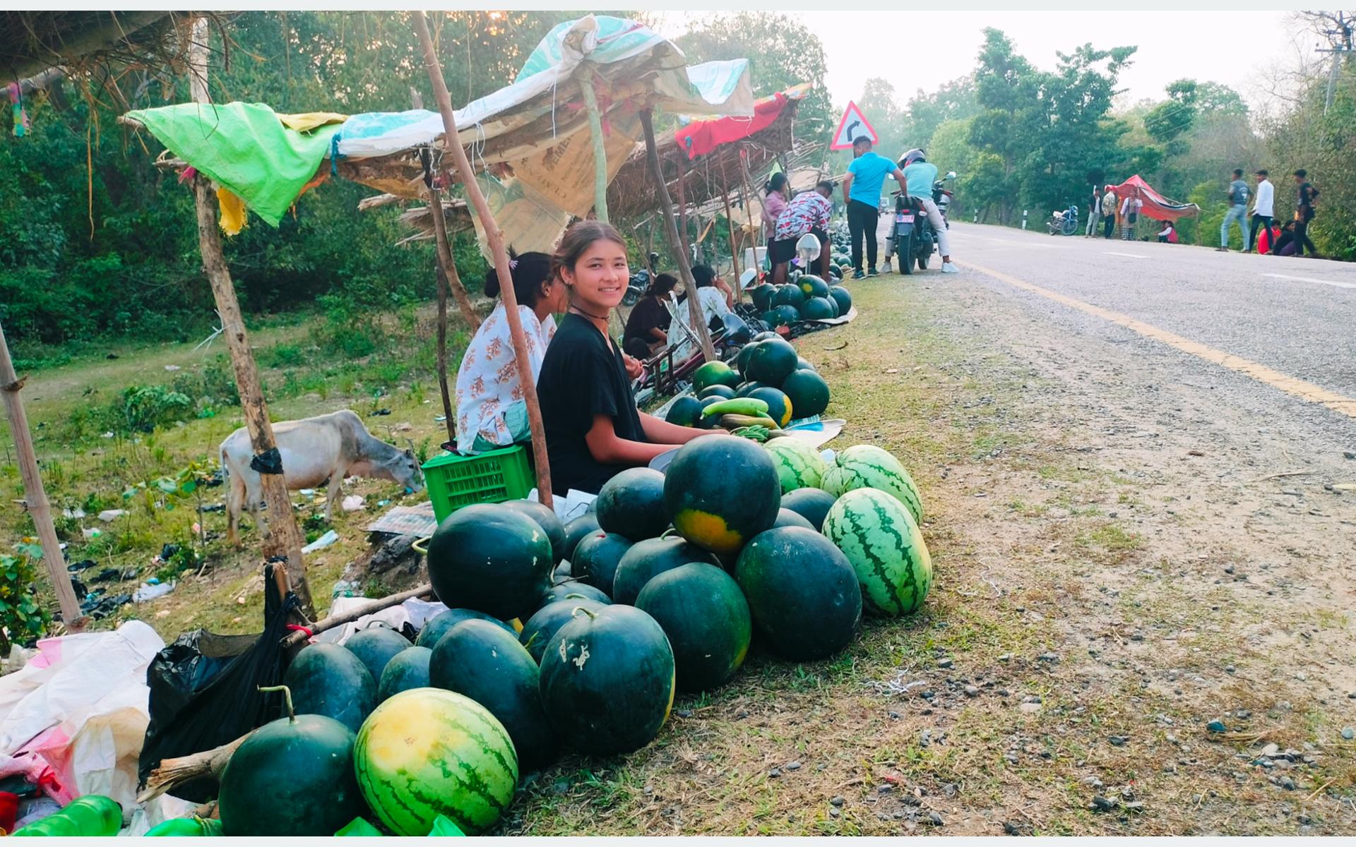 राजमार्ग छेउमै बसेर १४ वर्षीया अस्मिता रानाले पनि तरबुजा बेच्दै आएकी छन् । “बिहान विद्यालय जान्छु”, उनले भनिन्, “त्यसबेला आमाले टहराबाट बेच्नुहुन्छ, विद्यालयबाट फर्केपछि म बेच्छु ।”