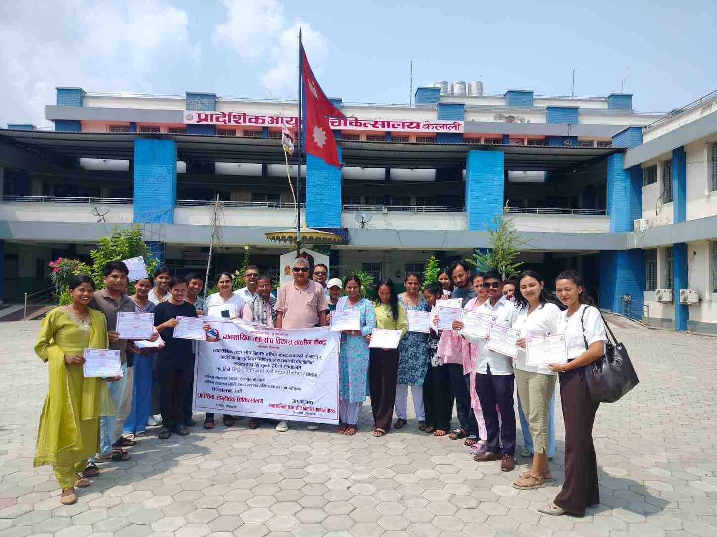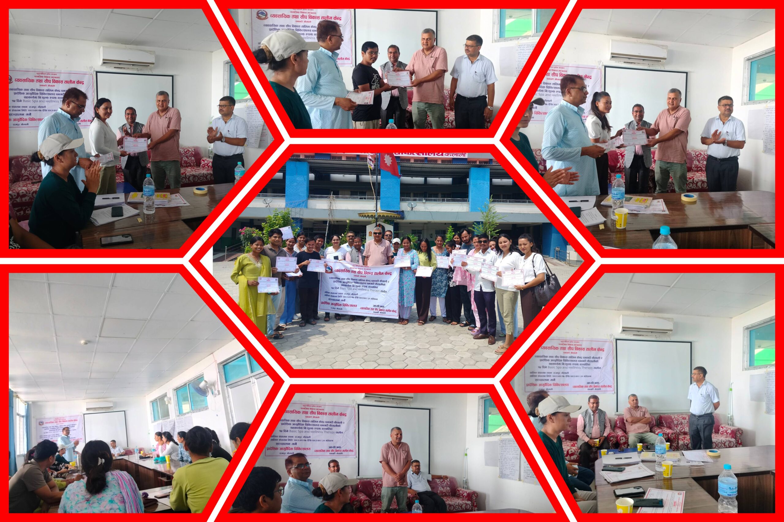 अत्तरिया- व्यवसायिक तथा सीप विकास तालिम केन्द्र धनगढी कैलाली र प्रादेशिक आयुर्वेद चिकित्सालय धनगढी कैलालीको सहकार्यमा सञ्चालित १५ दिने बेसिक स्पा तथा वेलनेस थेरापी तालिम शनिबार एक औपचारिक कार्यक्रमका बीच सम्पन्न भएको छ ।