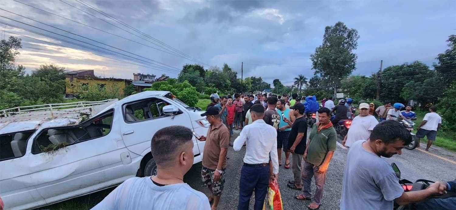महेन्द्रनगरबाट धनगढीतर्फ जाँदै गरेको बागमती प्रदेश–०१०३२ च ३२४१ नम्बरको हाइस विपरीत दिशाबाट आइरहेको मोटरसाइकललाई जोगाउने प्रयास गर्दा अनियन्त्रित भई सडक छेउमा पल्टिएको इलाका प्रहरी कार्यालय झलारीले जनाएको छ। घाइतेहरूको झलारीस्थित टी एन्ड सी अस्पतालमा उपचार भइरहेको छ ।