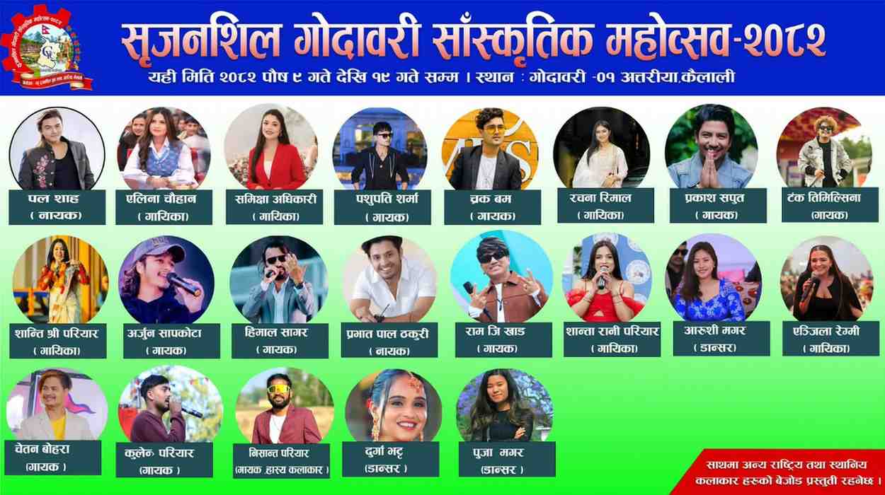 लक्ष्मी भट्ट/अत्तरिया- सृजनशील युवा क्लब अत्तरियाको आयोजनामा ‘सृजनशील गोदावरी सांस्कृतिक महोत्सव–२०८२’ आज पुष ९ गते बुधबारदेखि भव्य रूपमा सुरु भएको छ। महोत्सव पुष १९ गते शनिबारसम्म सञ्चालन हुनेछ ।