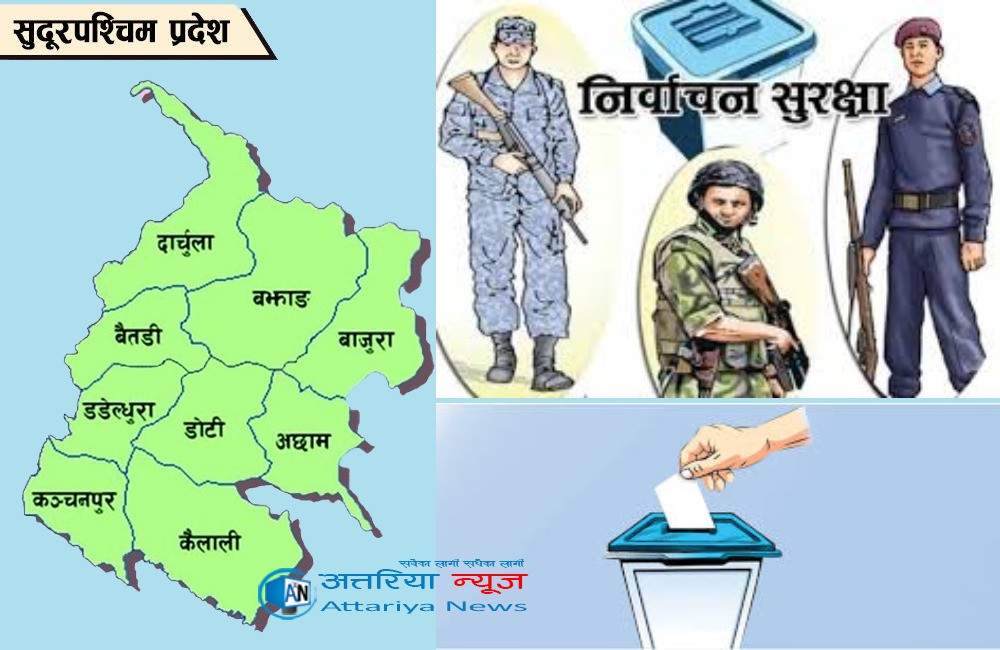 निर्वाचन सुरक्षाका लागि सुदूरपश्चिममा नेपाल प्रहरी, सशस्त्र प्रहरी, निर्वाचन प्रहरी परिचालन गरिनेछ भने बाहिरी सुरक्षा घेरामा नेपाली सेना रहनेछ। नेपाल प्रहरी मात्र सात हजारभन्दा बढी संख्यामा परिचालन गरिने प्रदेश प्रहरी कार्यालय धनगढीले जनाएको छ।