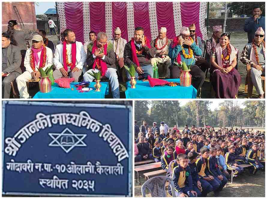 अत्तरिया- कैलालीको गोदावरी नगरपालिका–१० स्थित जानकी माध्यमिक विद्यालयमा दुई कोठे भवन निर्माणको शिलन्यास गरिएको छ । नगर प्रमुख विरेंद्र भट्टले एक कार्यक्रमबीच भवनको शिलन्यास गर्दै शिक्षा क्षेत्र नगरपालिकाको पहिलो प्राथमिकतामा रहेको बताउनुभयो । उहाँले नगरभित्रका ५४ वटै विद्यालयमा विषयगत शिक्षक अभावको समस्या समाधान भइसकेको जानकारी दिँदै अब भौतिक पूर्वाधार सुदृढीकरणमा जोड दिइएको उल्लेख गर्नुभयो ।