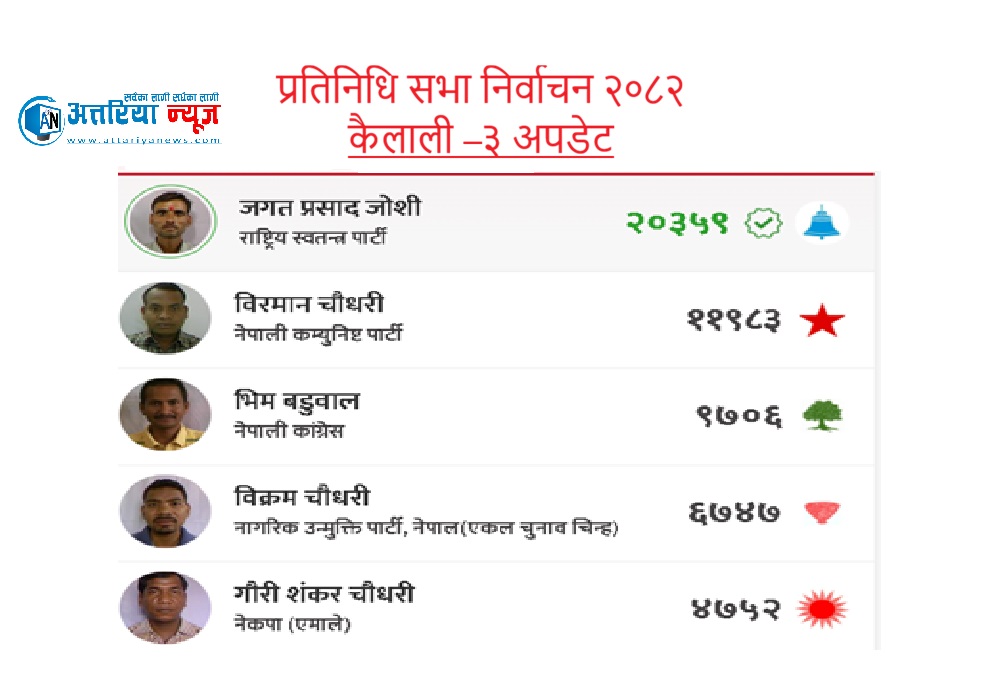 धनगढी- कैलाली– ३ मा राष्ट्रिय स्वतन्त्र पार्टी (रास्वपा) का उम्मेदवार जगतप्रसाद जोशी भारी मतान्तरसहित विजयी भएका छन्। जोशीले आफ्ना निकटतम प्रतिद्वन्द्वीलाई ८ हजार ३ सय ७६ मतको फराकिलो अन्तरले पछि पार्दै जित हासिल गरेका हुन् ।